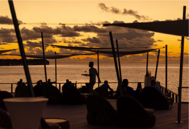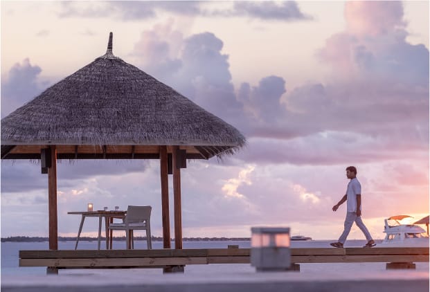 过海关并办完签证后,您将在出口处看到酒店工作人员手持欢迎牌等候,工作人员会带领您乘坐快艇前往度假岛;抵达码头时,您的专属管家及接待团队已在登岛处恭候,随后在管家陪同下前往贵宾休息室(Lounge)办理入住手续